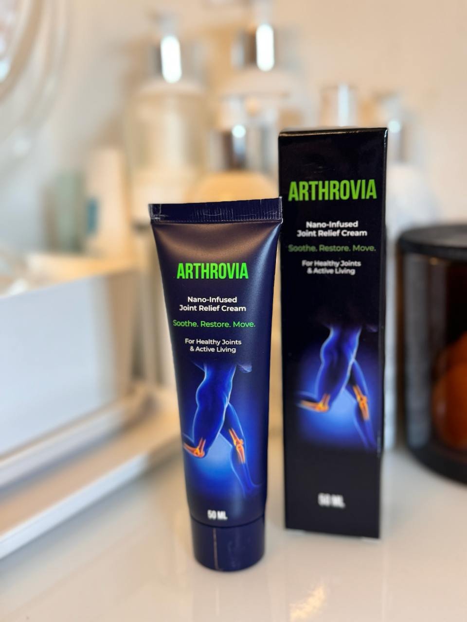 • Oxidarea pe Raft: În farmacii, cremele stau luni de zile sub lumina neoanelor, pierzându-și potența. Arthrovia™ vine direct din laboratorul nostru.